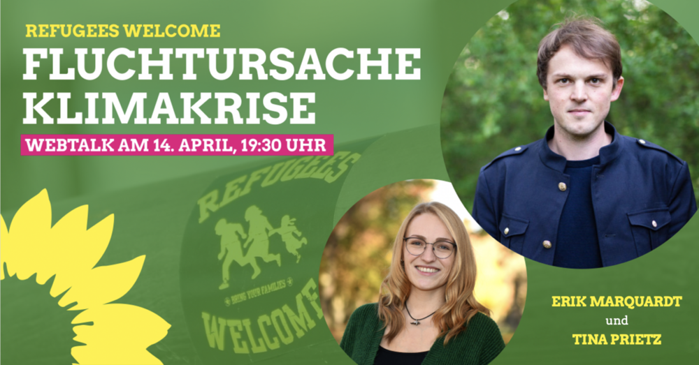 Erik Marquardt (Grünes Mitglied des Europäischen Parlaments) und ich freuen uns auf die Diskussion mit Dir über unterschiedliche Perspektiven auf die Themen Flucht, Migration und Klimagerechtigkeit.