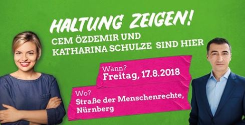 Wir nehmen die vielen offenen Fragen nach Ende des NSU-Prozesses in München deshalb zum Anlass mit Cem Özdemir und der Bayerischen Spitzenkandidatin Katharina Schulze auf ihrer Mittelfrankentour in Nürnberg halt zu machen, der NSU-Opfer zu gedenken und gleichzeitig nach vorne zu blicken, um Rechtspopulismus, Menschenfeindlichkeit und der zunehmenden Spaltung unserer Gesellschaft ein starkes Zeichen entgegenzusetzen.