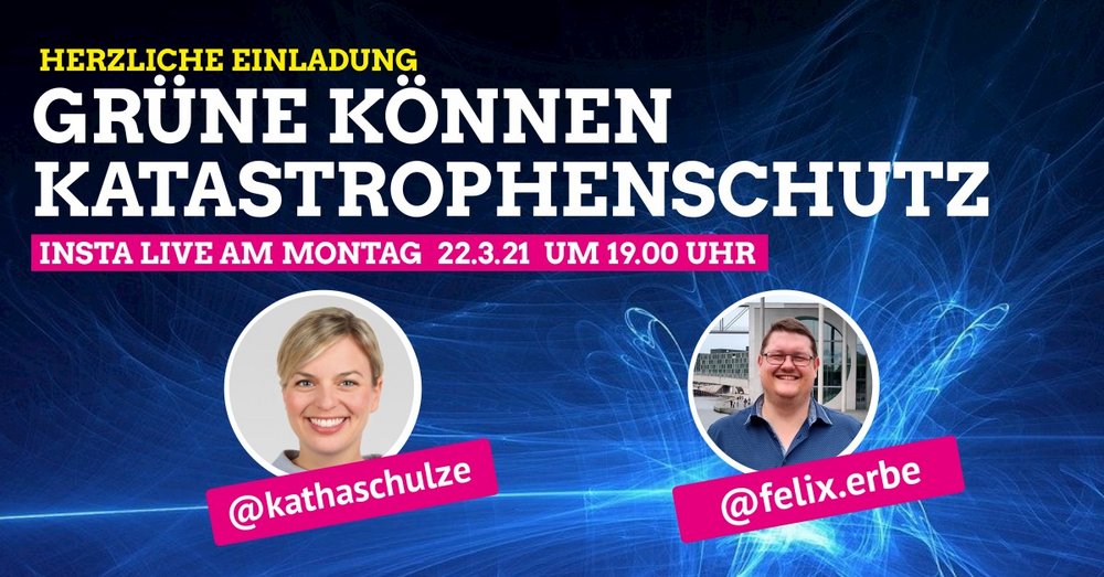 Katastrophenschutz? Ein grünes Thema? Ja absolut. Die aktuellen Extremwetterlagen – ob Hitzesommer, Schneechaos oder Hochwasser – zeigen die direkten Auswirkungen des Klimawandels auch bei uns in Deutschland. Hier müssen wir reagieren und den Katastrophenschutz voranbringen. Dazu diskutieren Katha Schulze und Felix Erbe bei Insta - Live.