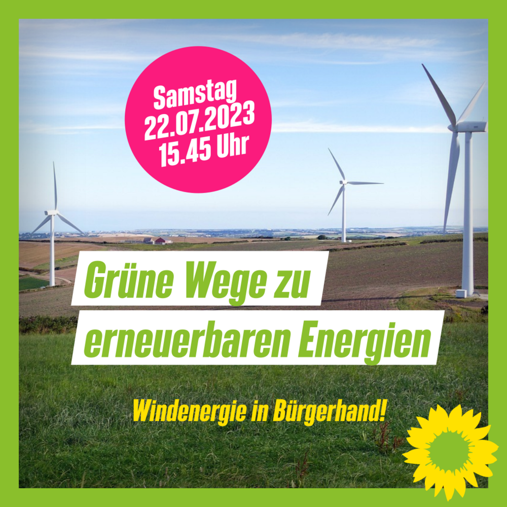 Windenergie in Bürgerhand -- Mit ihren fünf Windkraftanlagen produziert die Gemeinde Thalmässing dreimal so viel Strom wie sie verbraucht. Davon profitieren auch die Bürger:innen vor Ort: Sie sind an der Betreibergesellschaft direkt beteiligt. 240 Personen aus der Umgebung haben die 7 Mio. Euro Eigenkapital aufgebracht. Wir besichtigen mit einem Vertreter der Wust - Wind & Sonne GmbH, die mit der Gemeinde das Projekt auf den Weg gebracht hat, die Anlagen und erfahren mehr über Bürgerenergie bei der anschließenden Diskussion (ab 17 Uhr) im Gasthaus Christa Weglehner in Landersdorf.