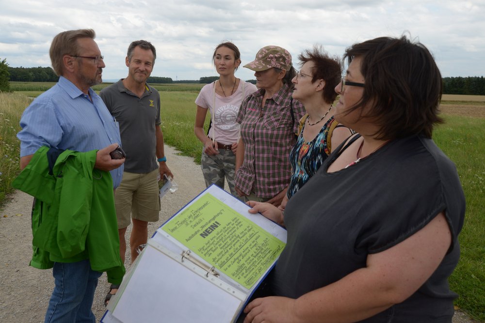Die Bürgerinitiative "Umgehung umgehen", führt auf einem Teilstück der ehemals vorgesehenen Cadolzburger Umgehungsstraße und erläutert dabei die wichtigsten Punkte der im Bürgerentscheid 2016 mit 70% abgelehnten Umgehung. Ein durch „Nichtbau“ erfolgreiches Beispiel von Flächensparen.