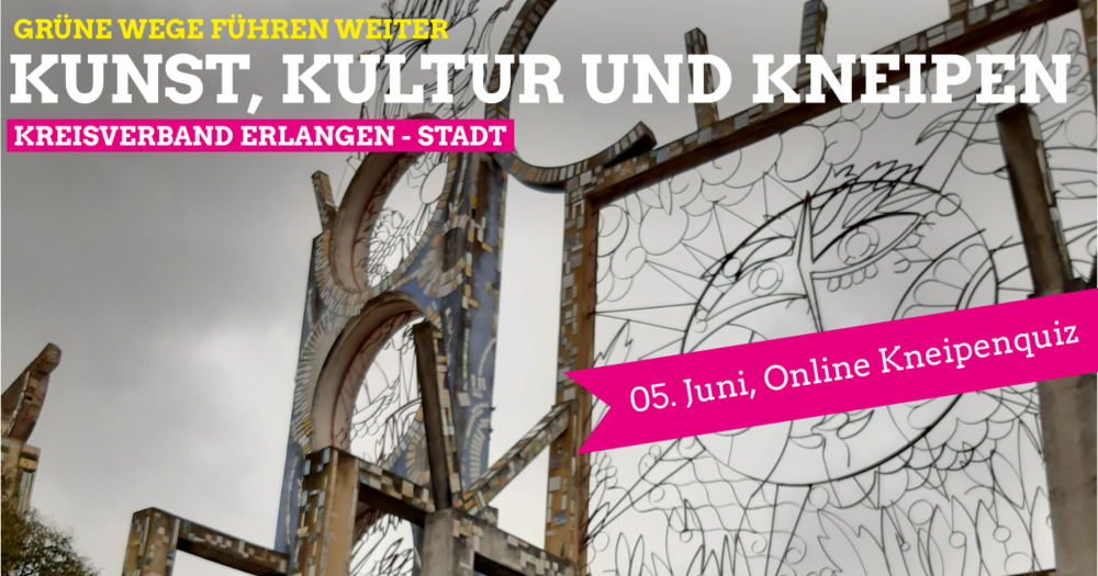 Nach 1,5 Jahren Pandemie verdient die Kultur unser besonderes Augenmerk. Bei unserem Kneipenquiz spielen verschiedene Teams bei gemütlicher Atmosphäre, Essen und Getränken gegen einander ein Quiz und erweitern damit zusätzlich ihren Horizont. In unserem Fall drehen sich die Quizfragen um die Mittelfränkischen Kulturszene und deren aktuelle Situation, die wir anschließend in einem kleinen Podium aufgreifen.