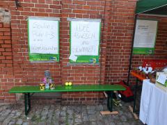 Wir waren wieder bei strahlendem Wetter mit unserem Stand vertreten und wollten von den Menschen wissen, was wünscht ihr euch von der Kommunalpolitik? dazu konnte jede/r seinen Wunsch (manchmal waren es auch mehrere) auf einen Zettel schreiben und in die Losbox werfen. Am Sonntag wurden davon dann 3 Gewinner gezogen die je ein Vogelhäuschen erhalten haben - die Verlosung wurde unter genauester Beaufsichtigung vom Nachbar-Stand neben uns :-) beaufsichtigt.