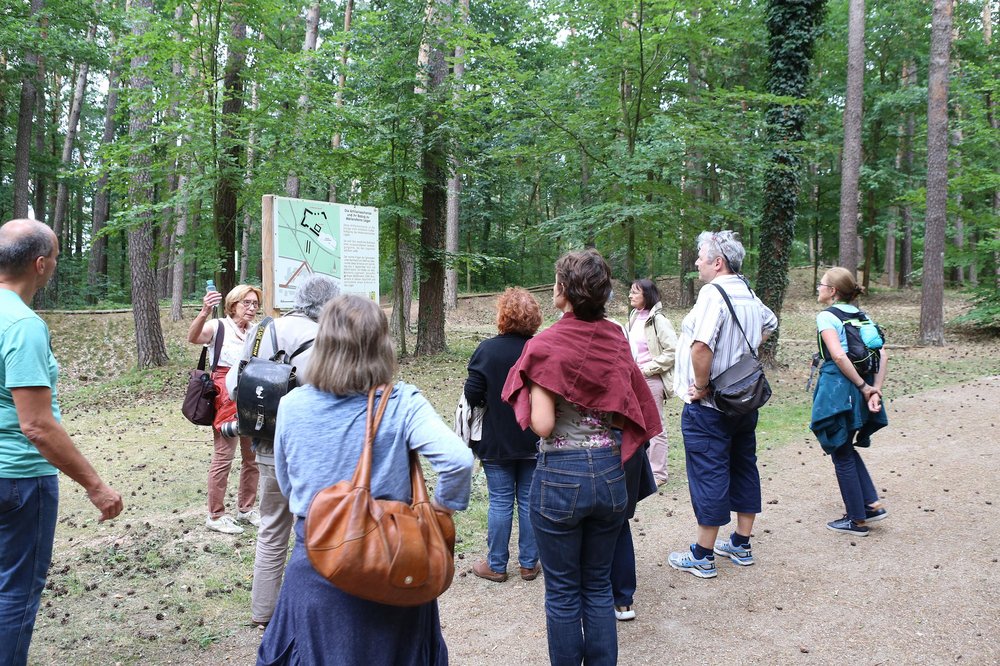 Zum Abschluss wanderte die Gruppe zum Vestner Turm, von dem aus der Rundblick bis zu den Rändern des damaligen Lagers nochmals die Ausdehnung erkennen ließ. Neben den chronologischen Informationen zur Entstehung des Turms, bereicherten einige Anekdoten von Frau Venus unseren Rundgang.