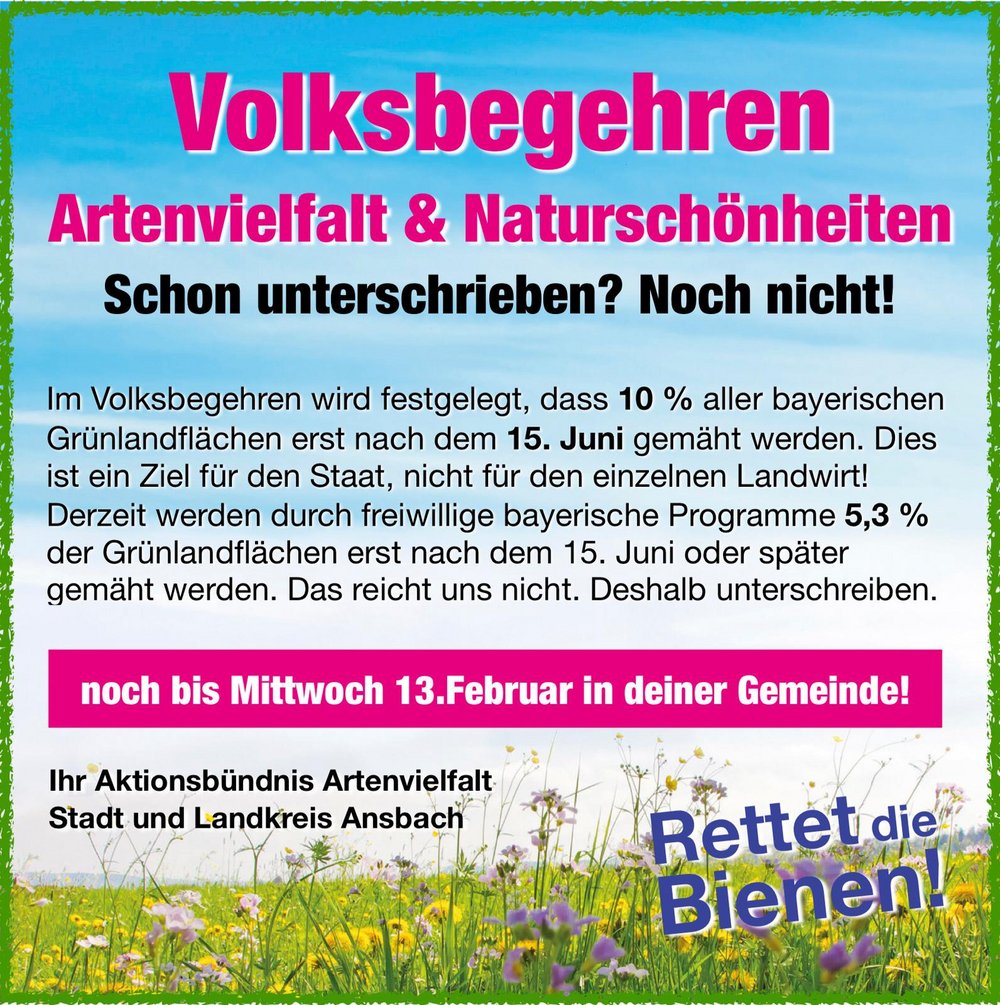 Bitte geht in die Rathäuser und tragt euch für das Volksbegehren ein, wenn euch die Natur, die Tiere und Insekten was bedeuten!