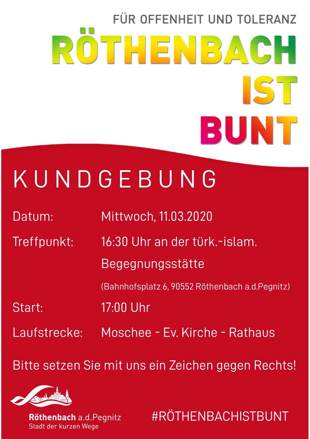 Um ein Zeichen für ein friedliches Miteinander und eine offene Gesellschaft zu setzen, plant die Stadt Röthenbach eine Kundgebung unter dem Motto "RÖTHENBACH IST BUNT".